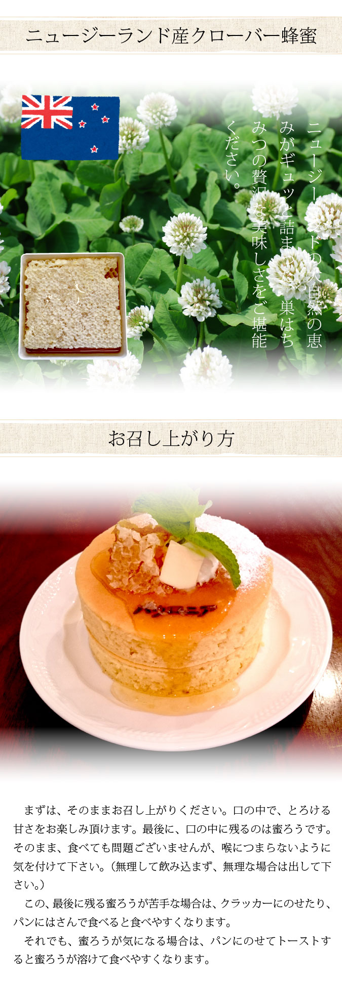 | 原材料名 | クローバー巣はちみつ(ニュージーランド) |