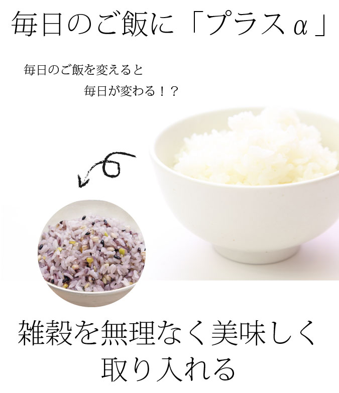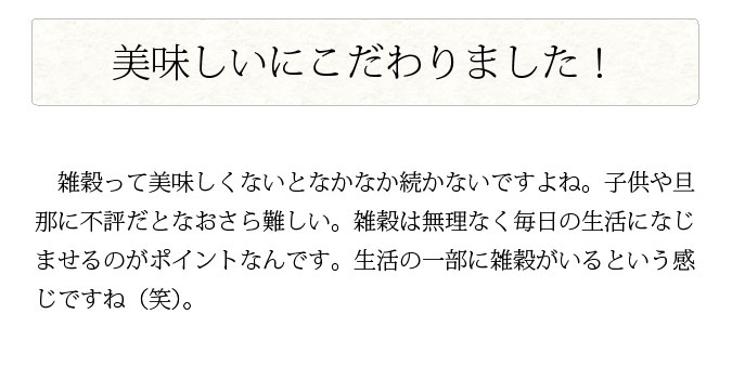 | 1日摂取目安量 | 1袋(炊き上がり雑穀ごはんとして1合分) |
